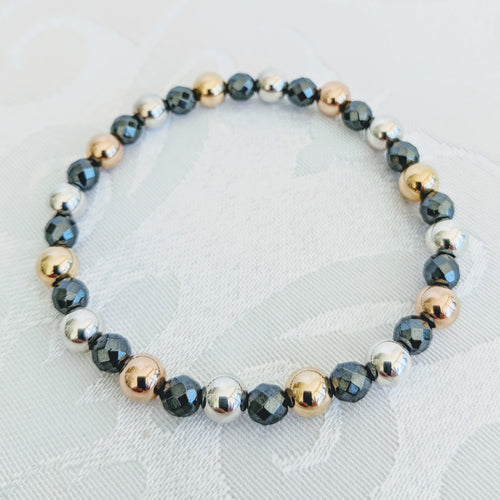 Faceted Hematite with gold, rose gold & silver