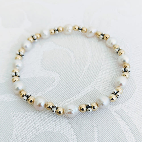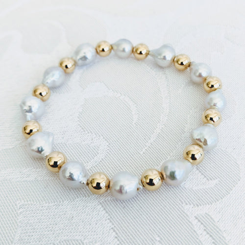 Charmante - Baby Baroque pearl bracelet with silver caviar and 14 k gold fill