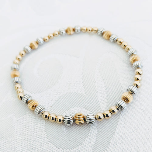 Alternating matte Sterling silver and 14 karat gold fill beads