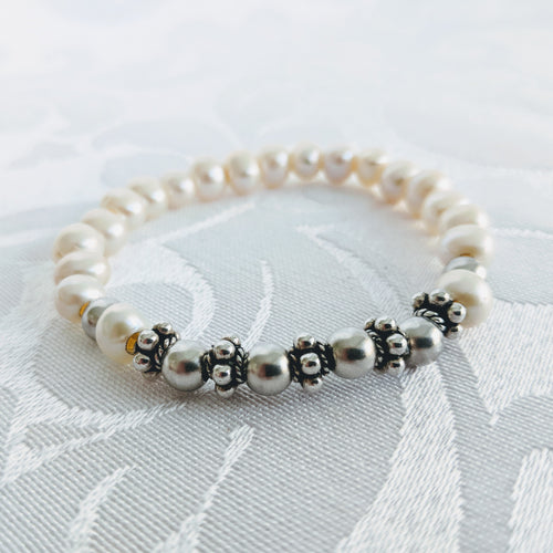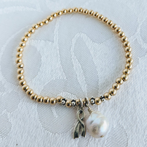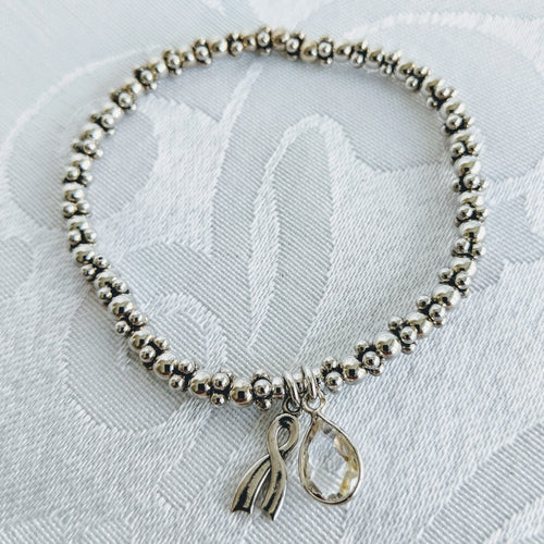 Caviar Sterling silver bracelet with clear quartz and awareness charm
