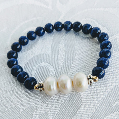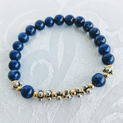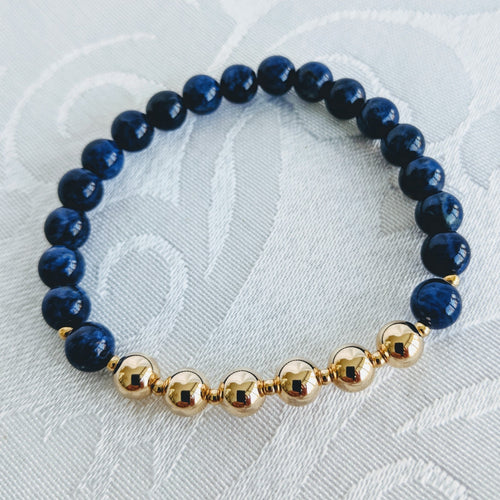 Blue sodalite, 14k gold fill & sterling silver caviar bracelet